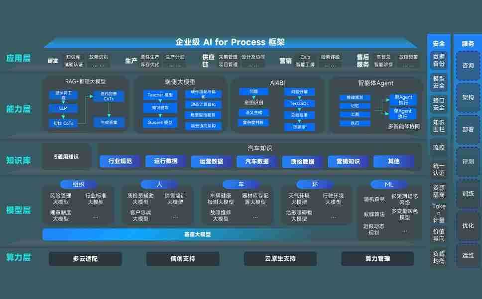 端到端的一站式AI工作空间深度融合了从企业战略规划到日常经营的全流程业务板块,,,,定向解决车企内部领域多、、、部门多、、链条长、、、场景碎片化等难题,,,支持车企快速构建以AI为核心的生产力写作体系,,实现任务执行与AI能力的无缝集成与交互